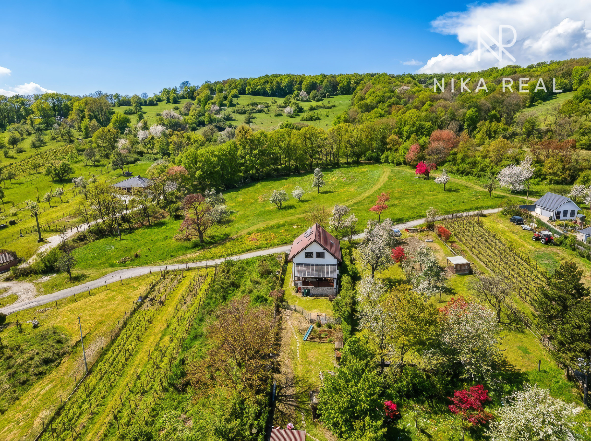 Poloha domu na miernom kopci zabezpečuje krásne výhľady na okolitý les a obec, ktoré dotvárajú jedinečnú atmosféru tohto domova.