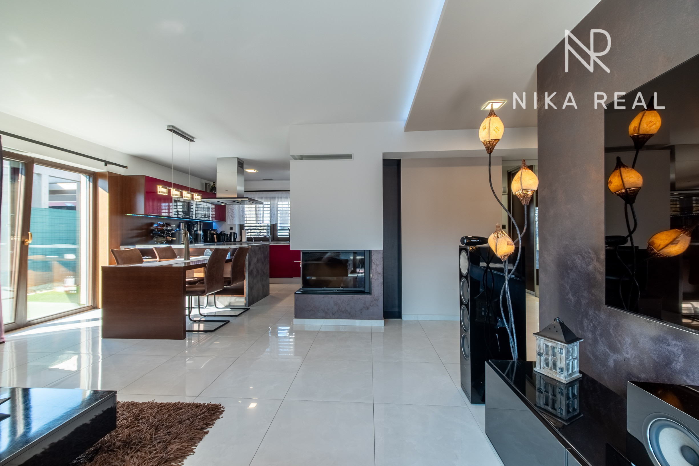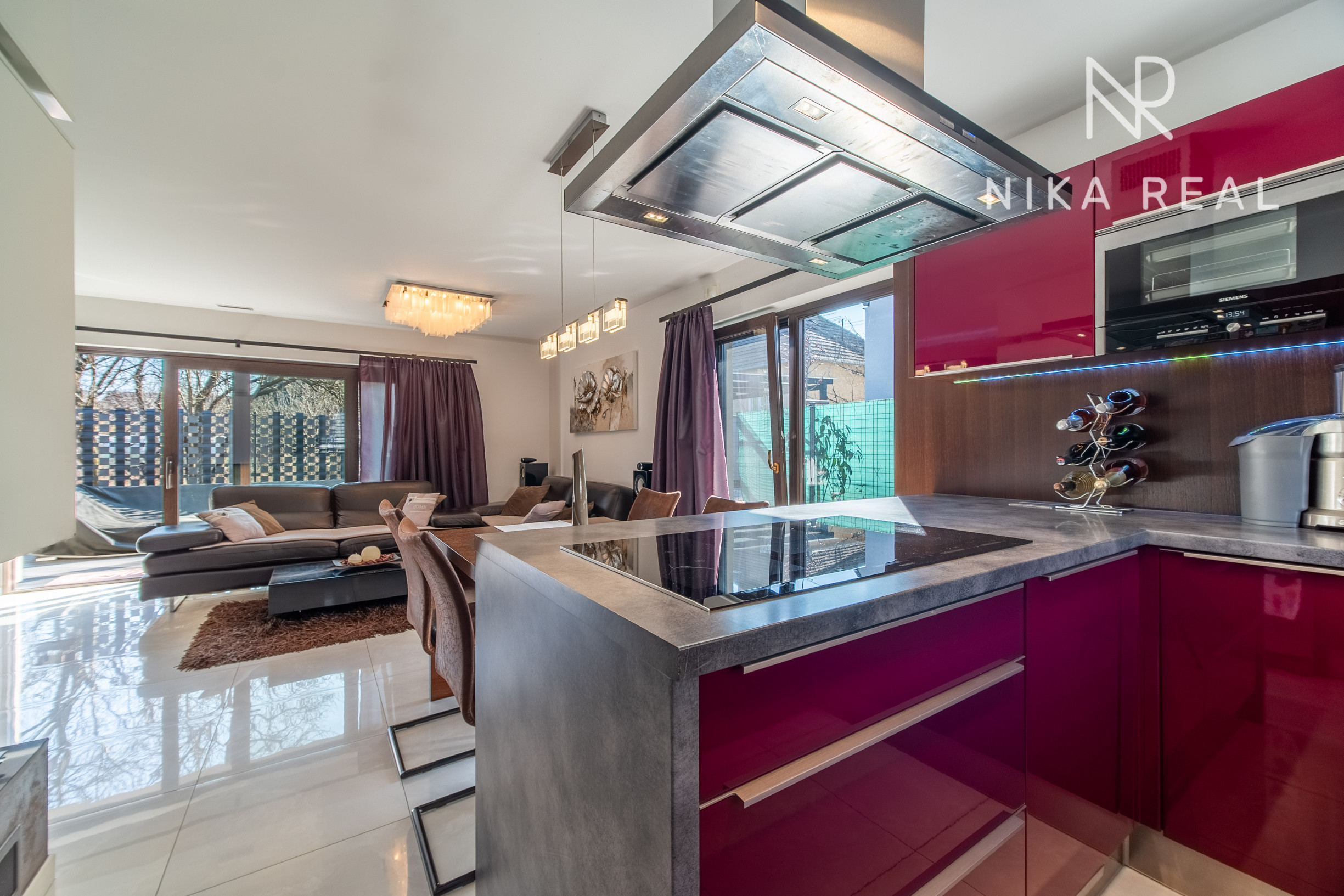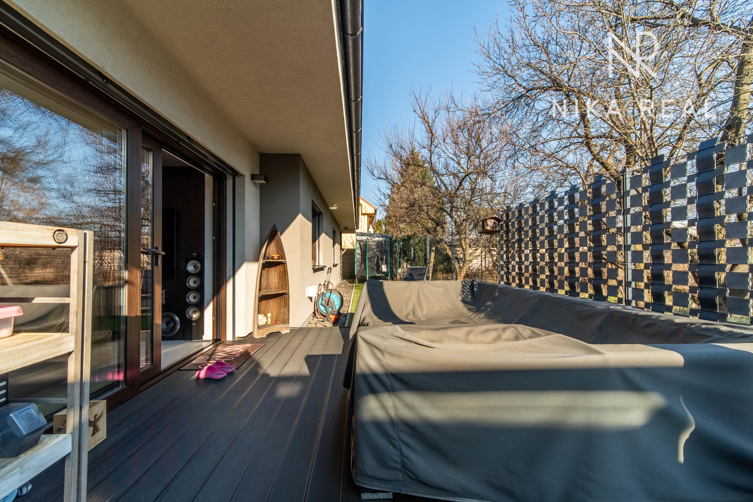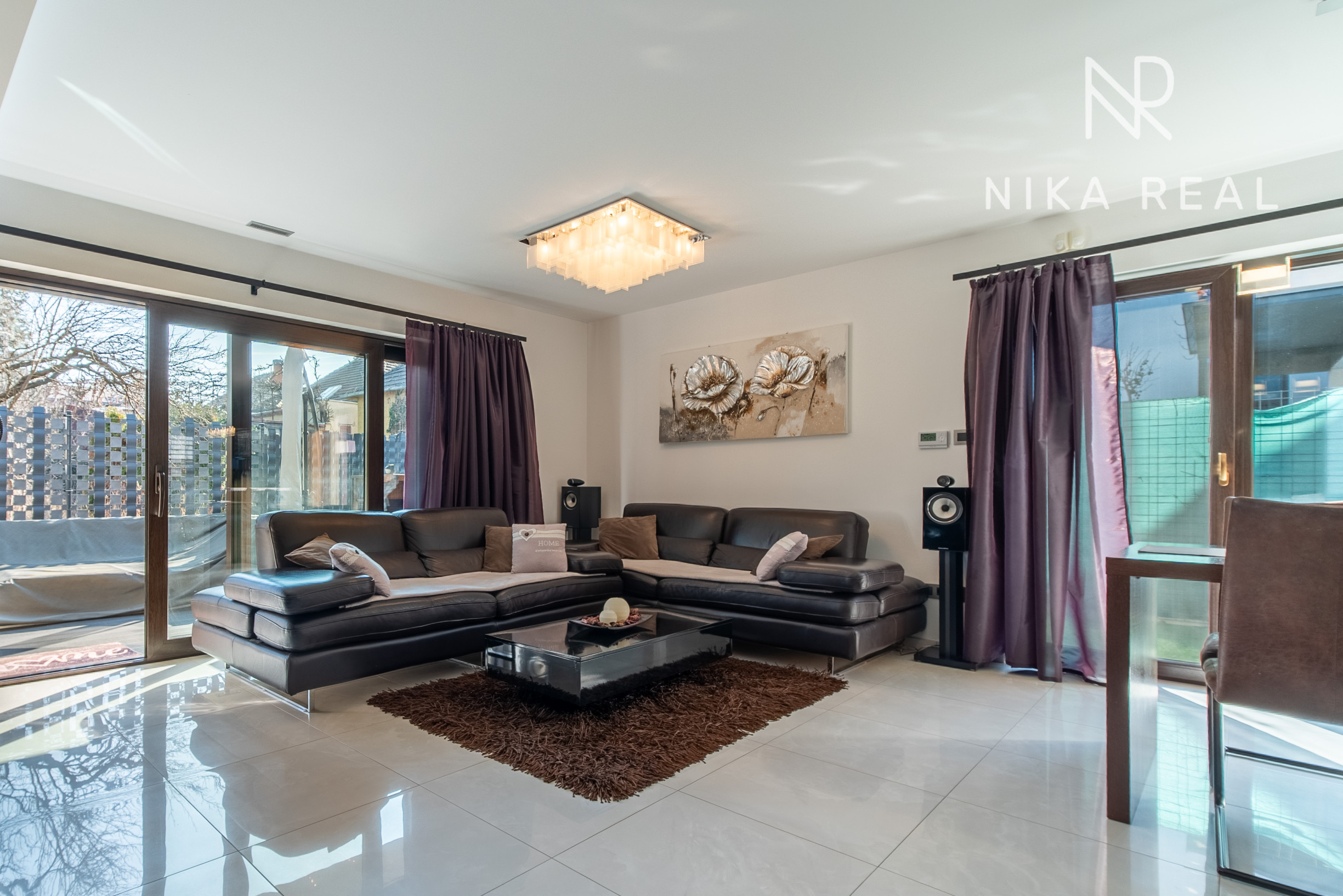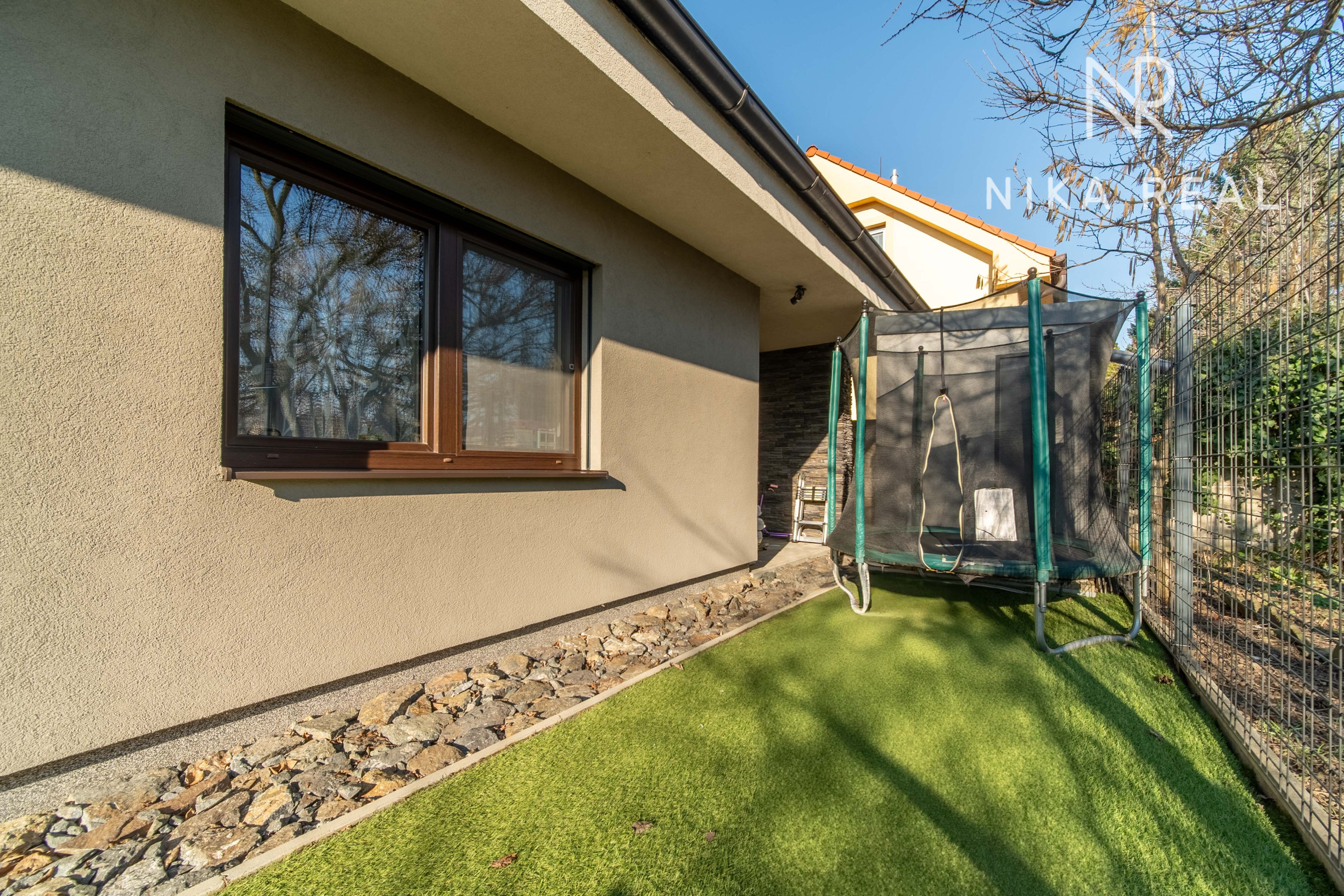 Okná sú plastové s trojsklom, v obývačke sa nachádza hliníkový HS portál, ktorý zabezpečuje dostatok svetla a komfortný výstup na terasu. Interiér dopĺňajú znížené sadrokartónové stropy so zabudovaným doplnkovým osvetlením, rekuperáciou aj klimatizáciou.