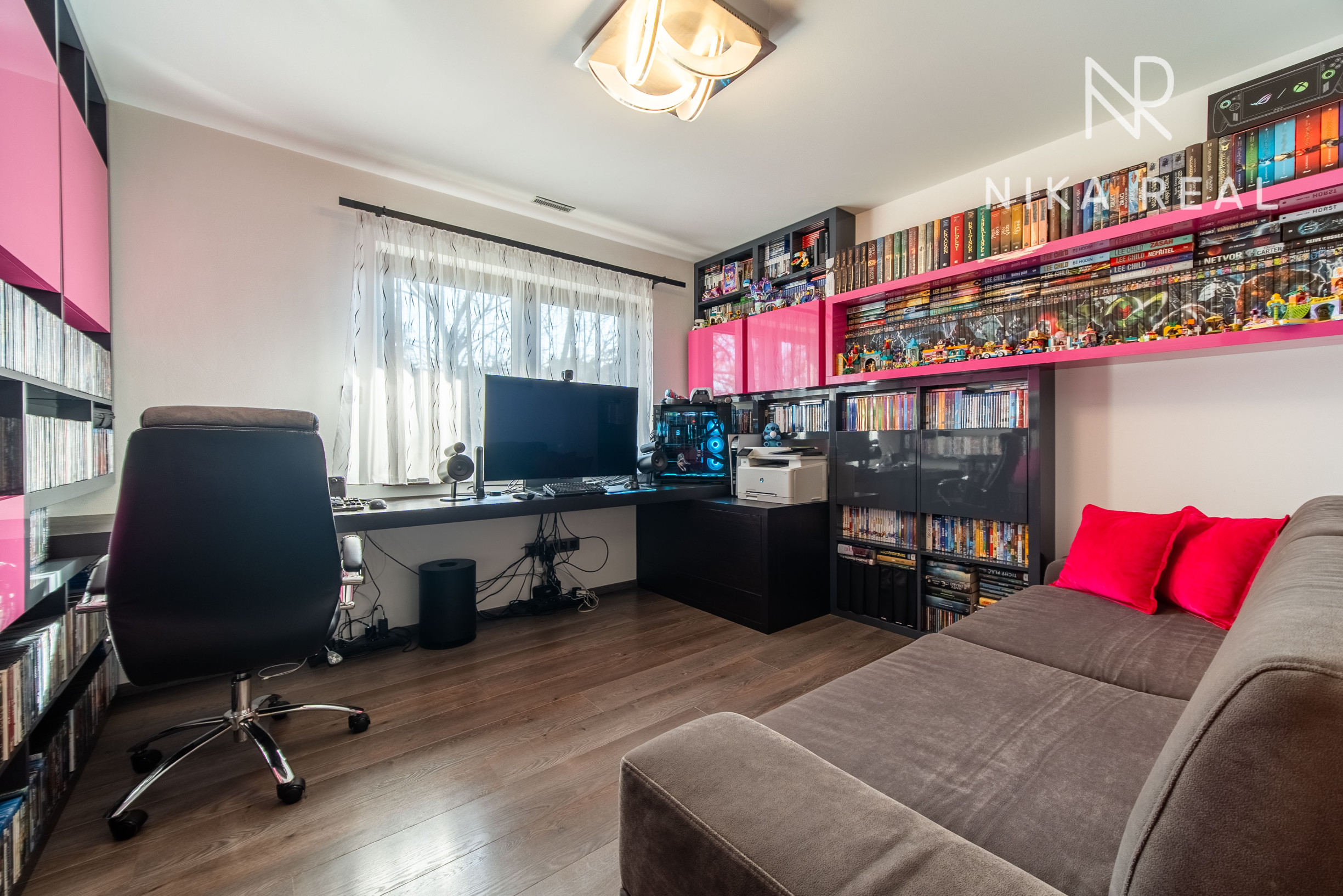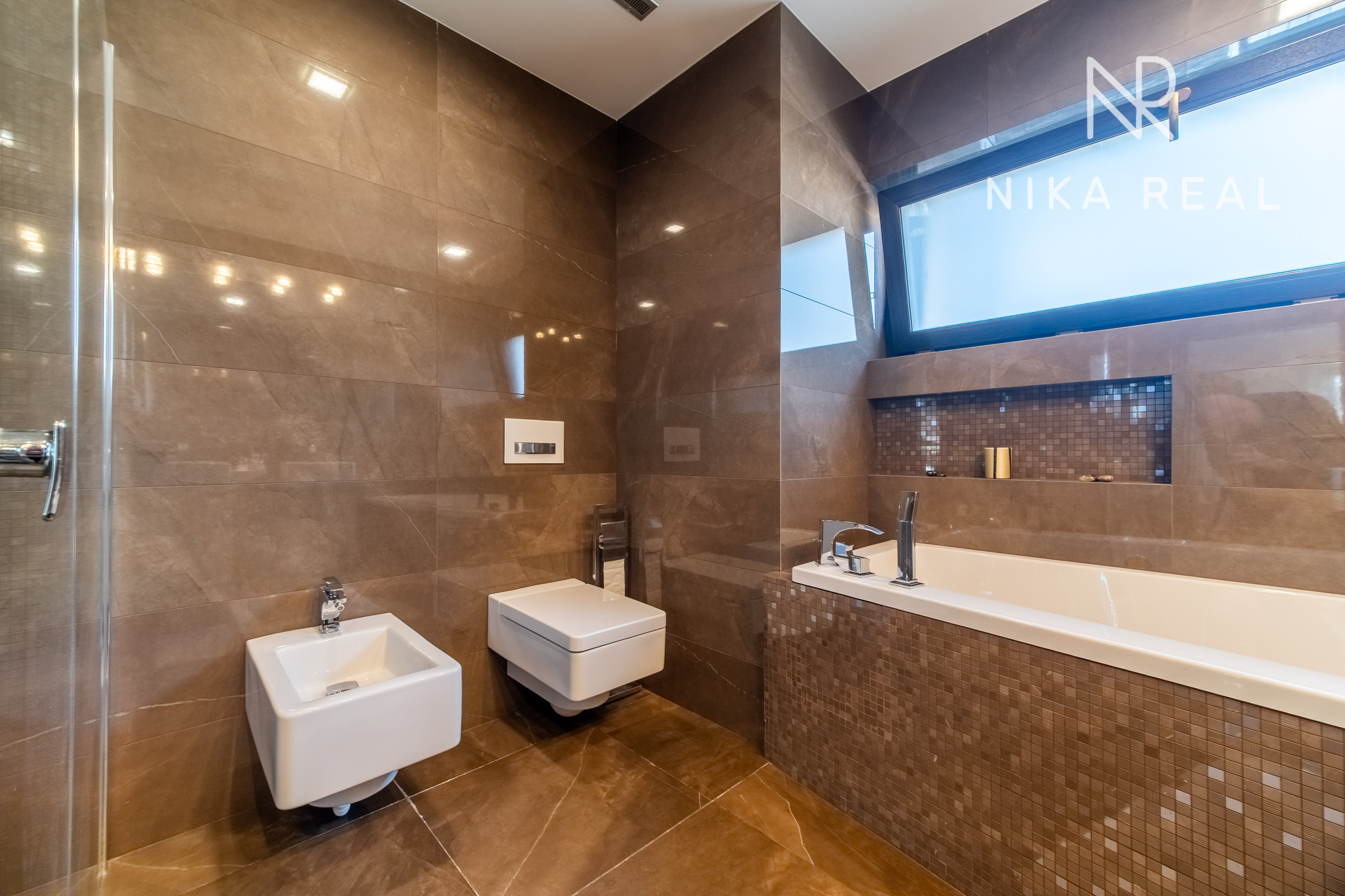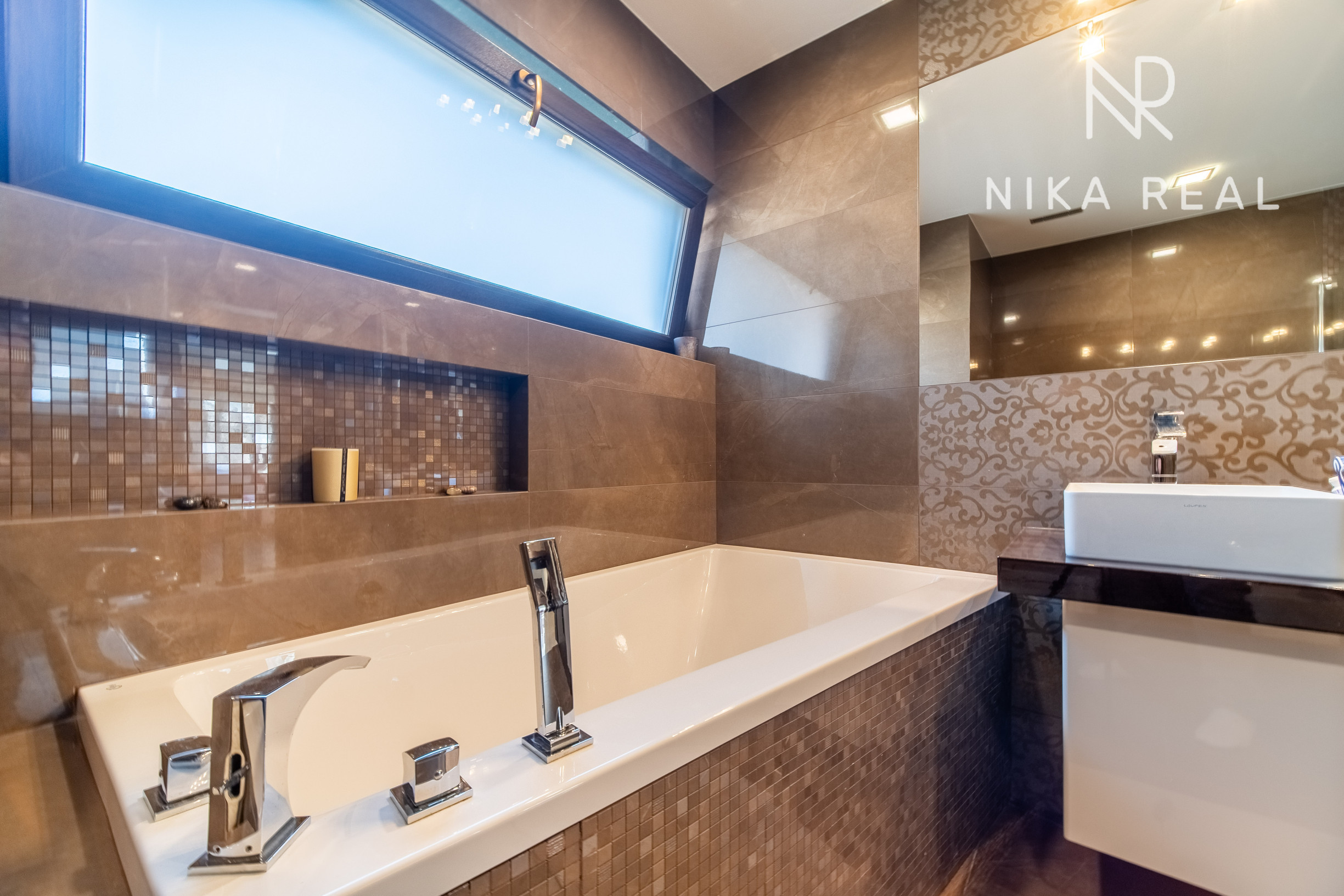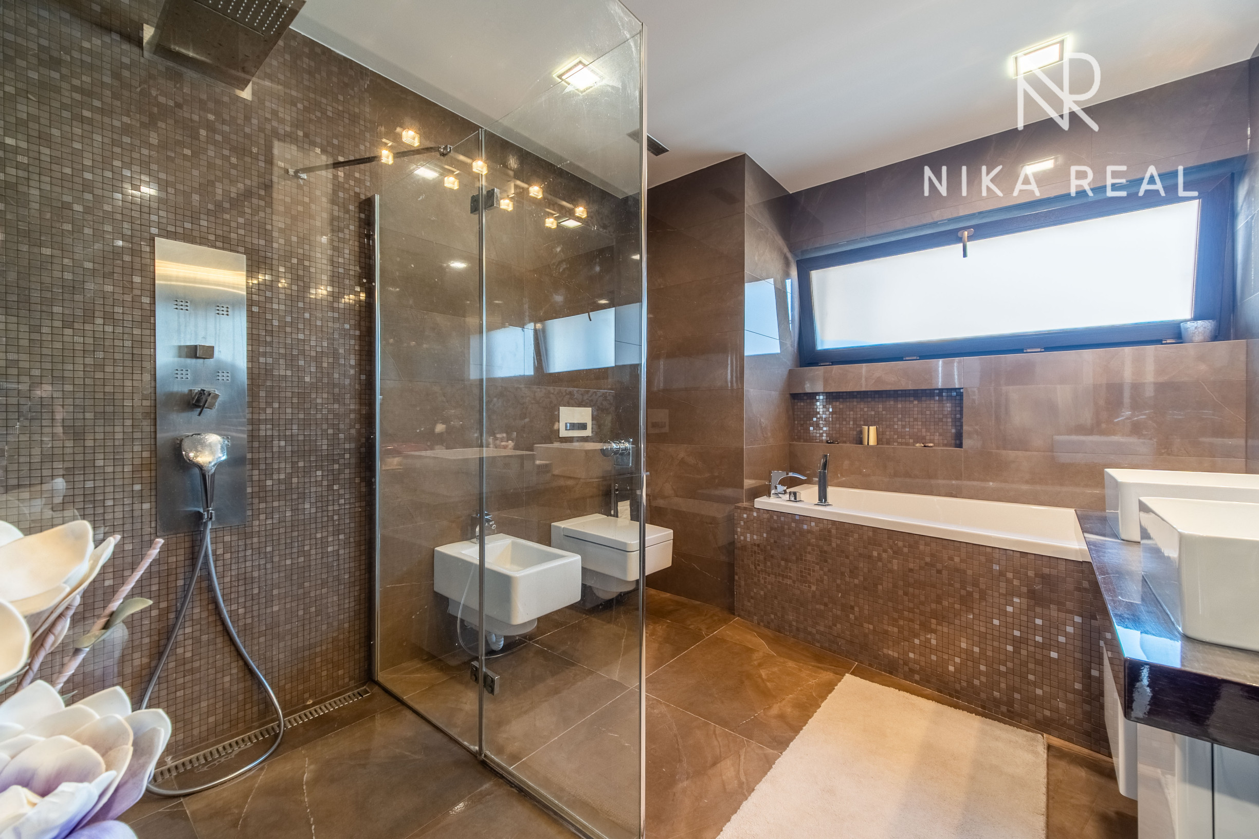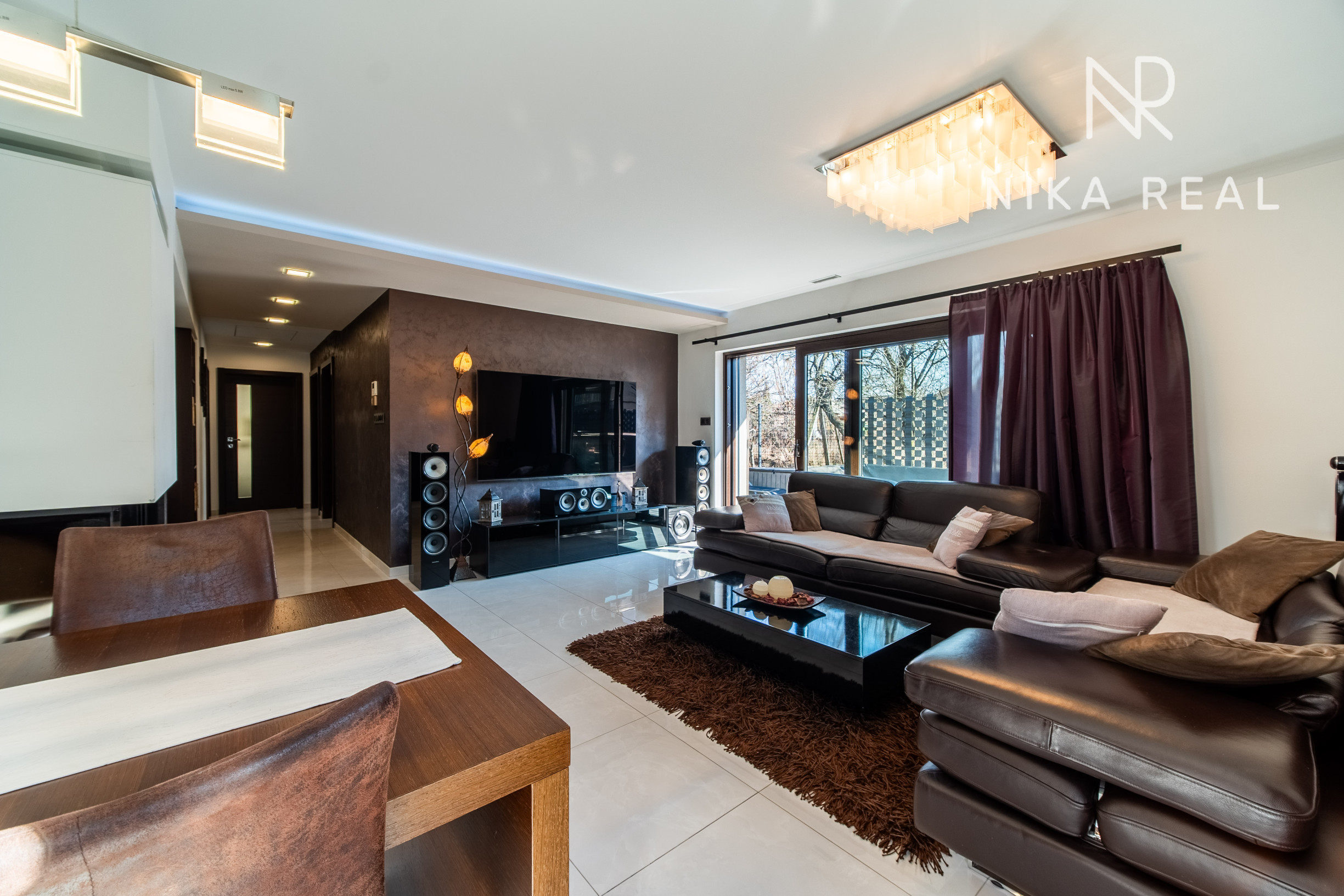 Okná sú plastové s trojsklom, v obývačke sa nachádza hliníkový HS portál, ktorý zabezpečuje dostatok svetla a komfortný výstup na terasu. Interiér dopĺňajú znížené sadrokartónové stropy so zabudovaným doplnkovým osvetlením, rekuperáciou aj klimatizáciou.
