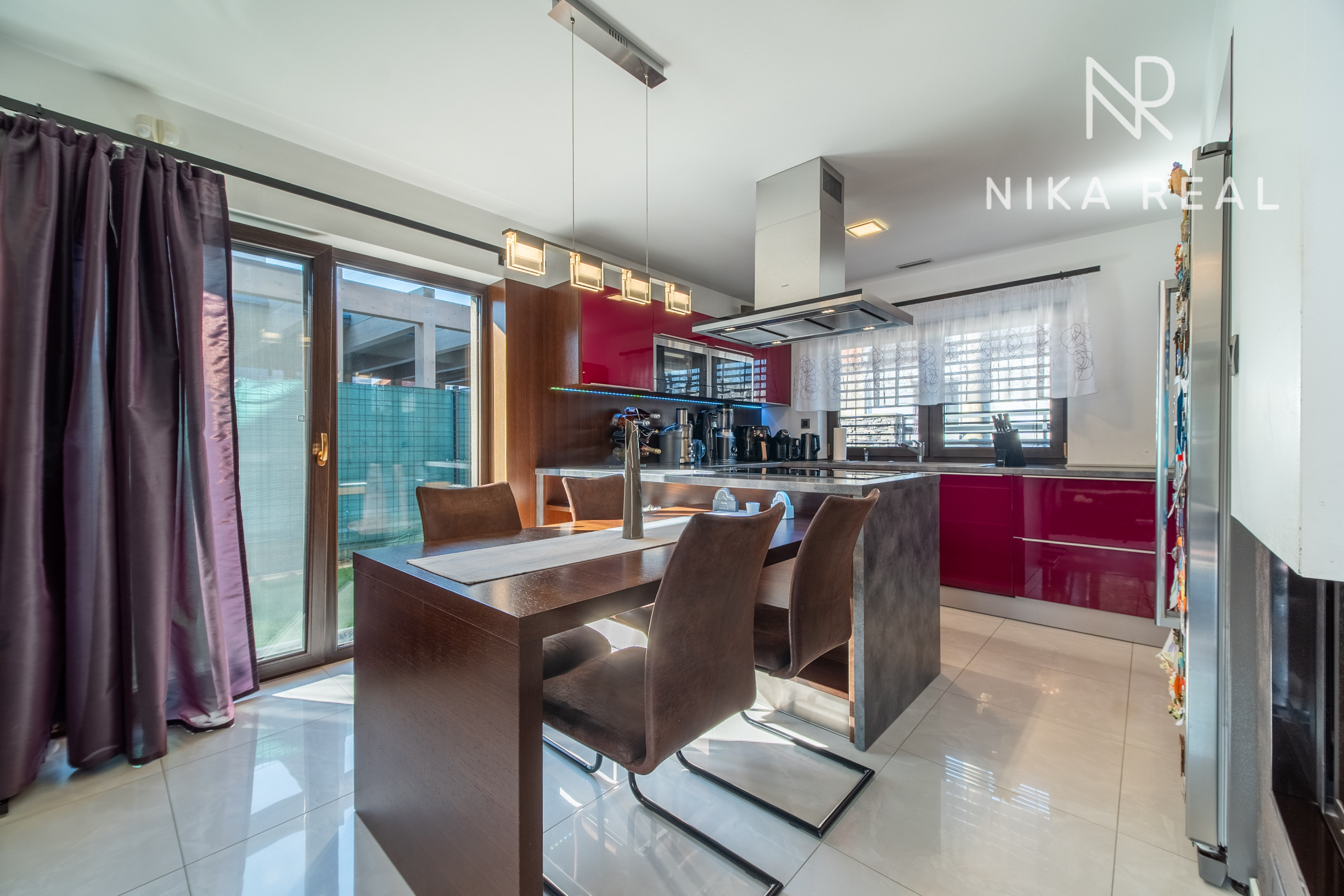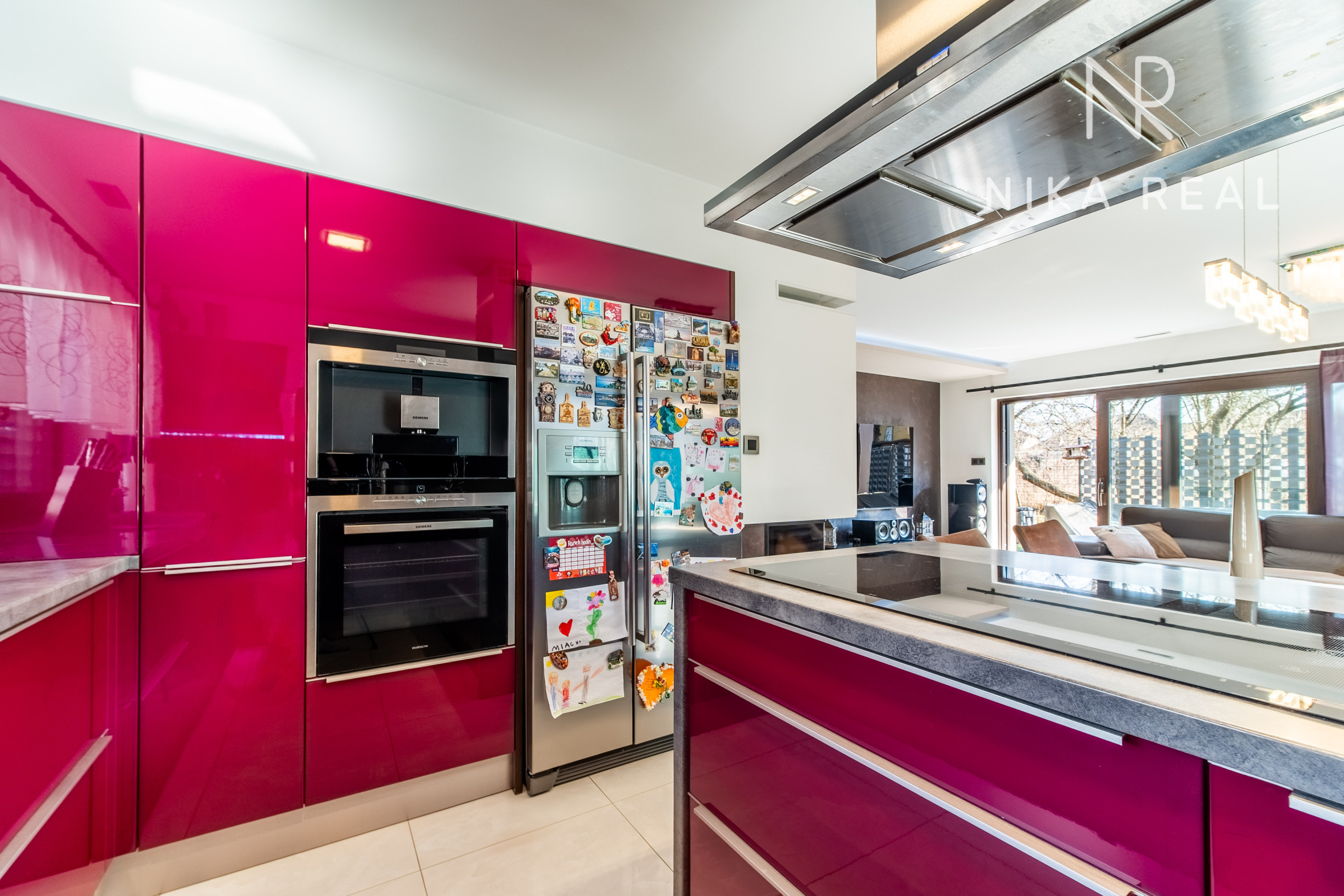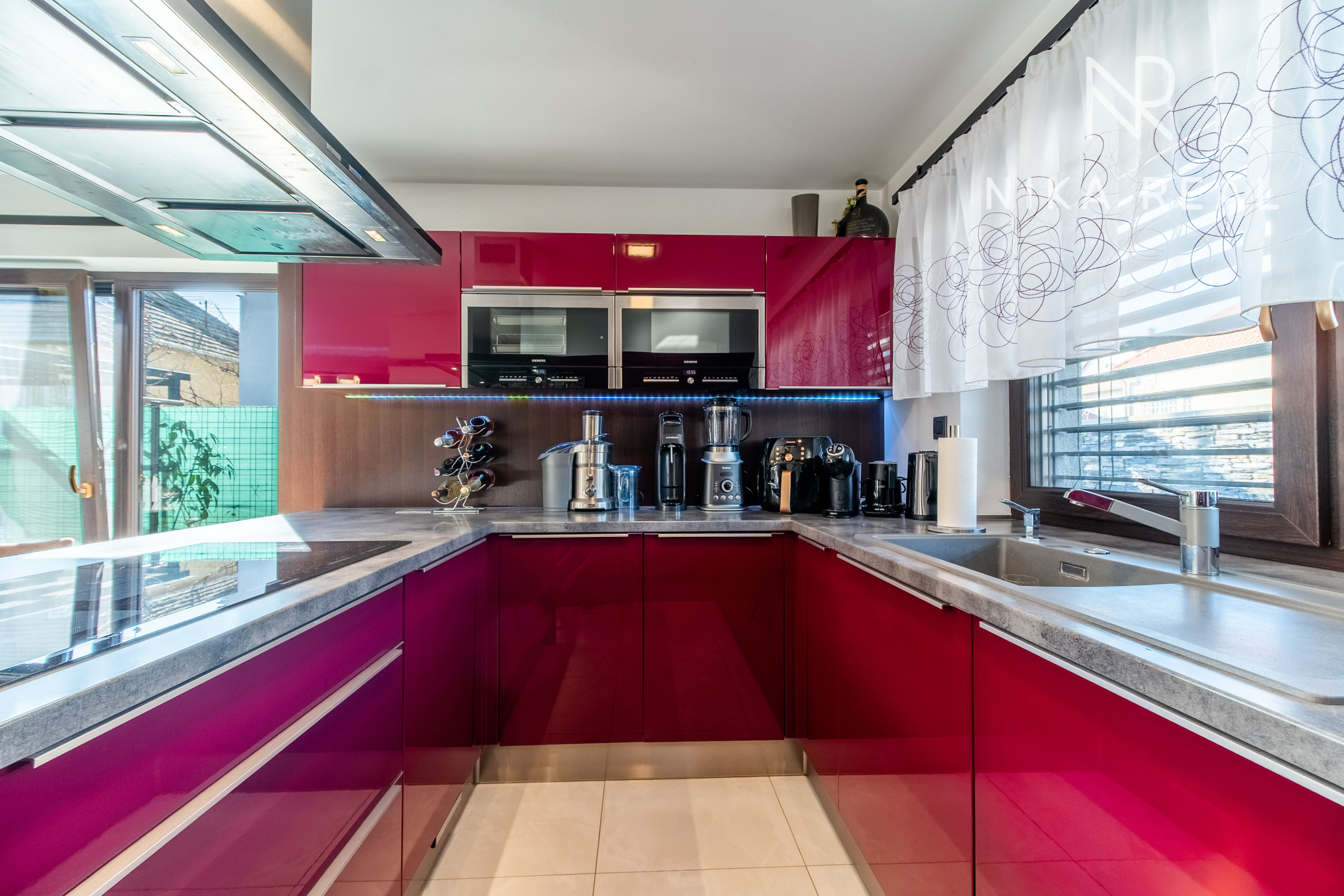 Kuchyňa je vybavená kuchynskou linkou so zabudovanými spotrebičmi značky Siemens – indukčná varná doska, digestor s vývodom na povalu, elektrická rúra na pečenie, parná rúra, mikrovlnná rúra, umývačka riadu, drvič odpadu, kávovar a americká chladnička s mrazničkou.