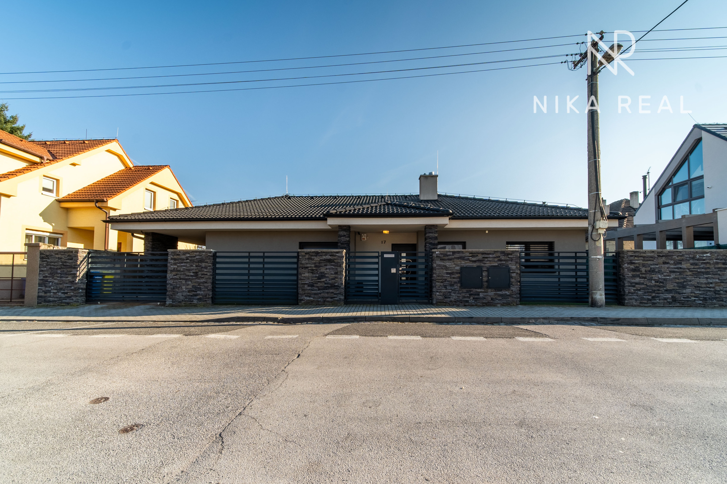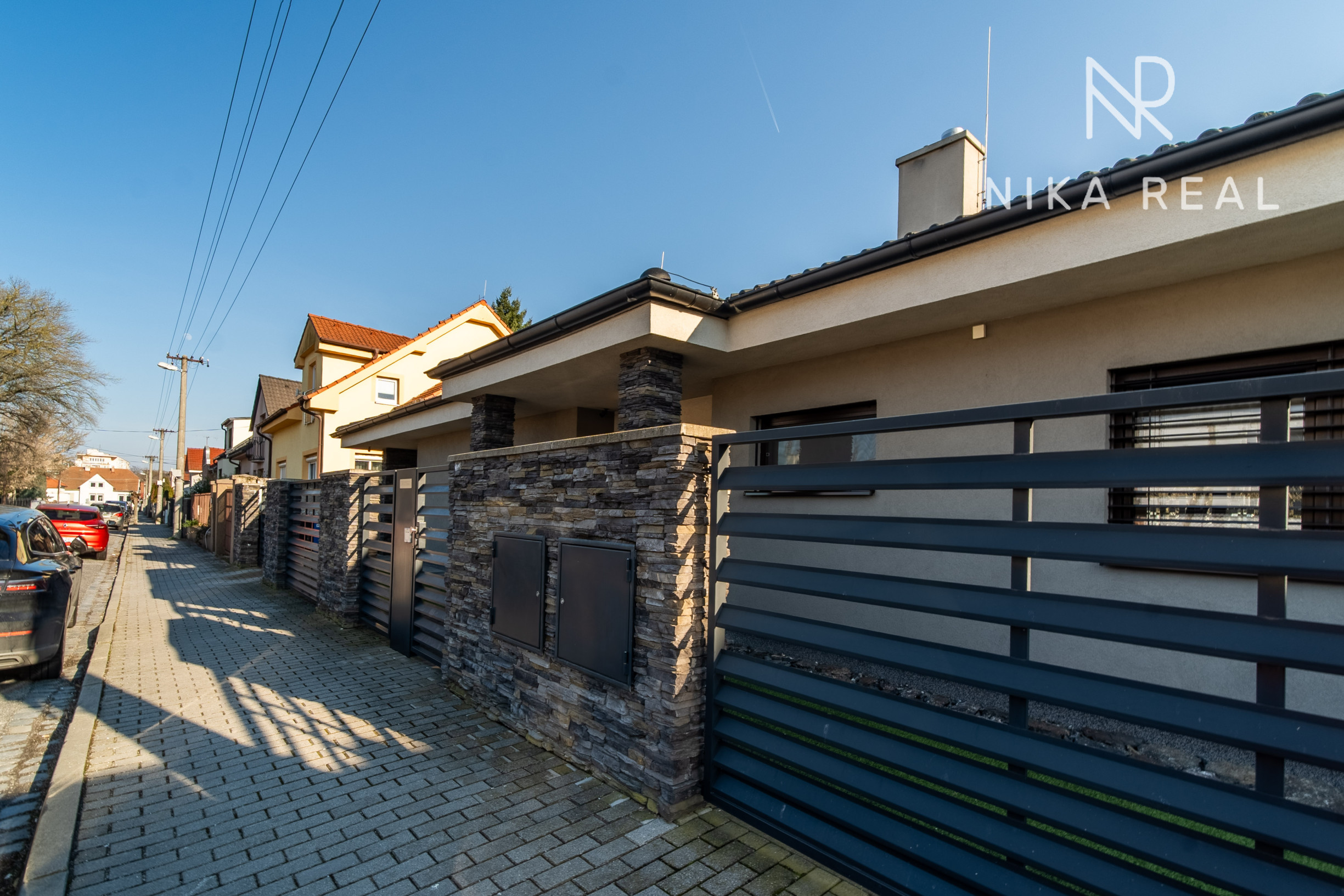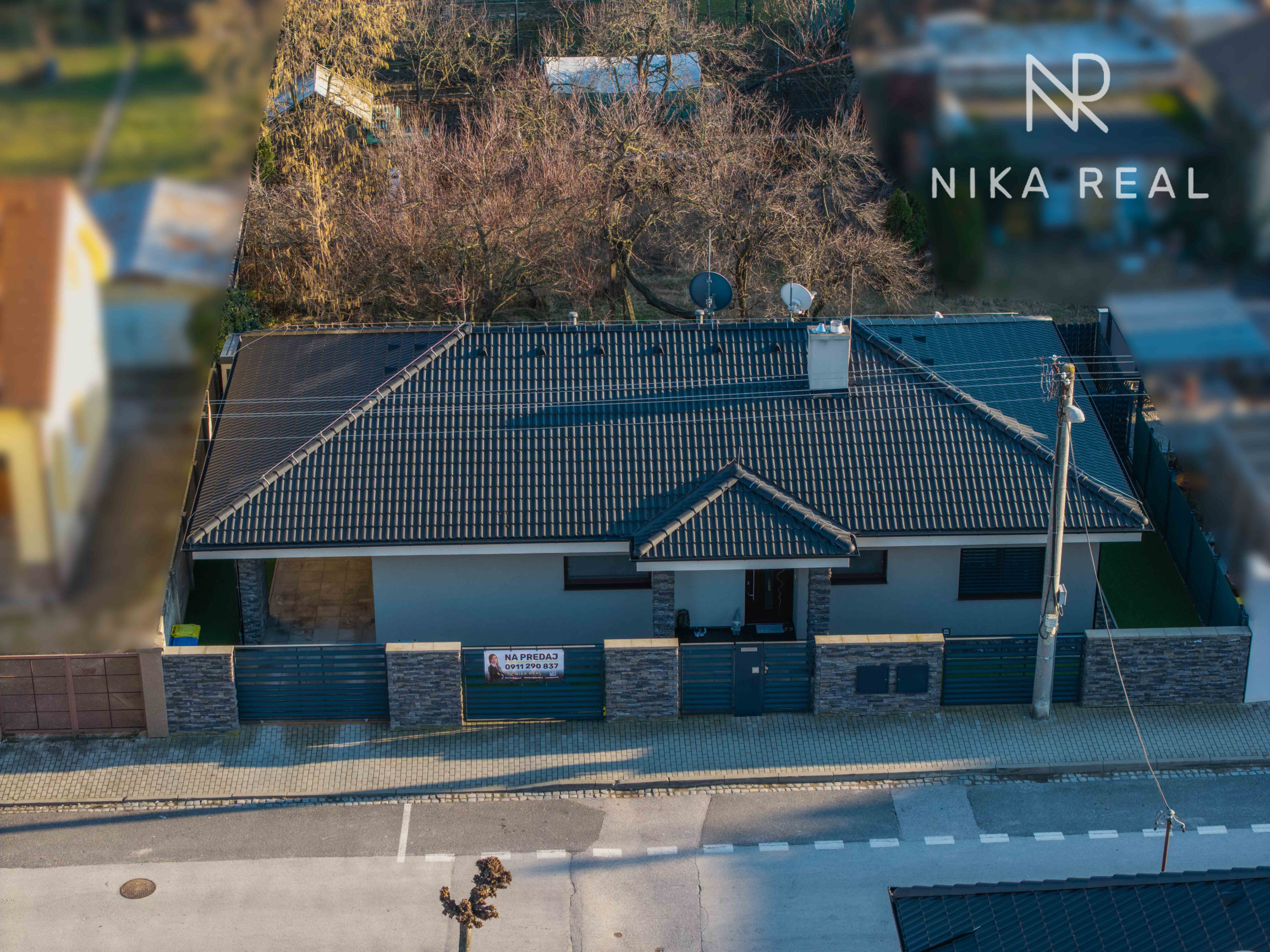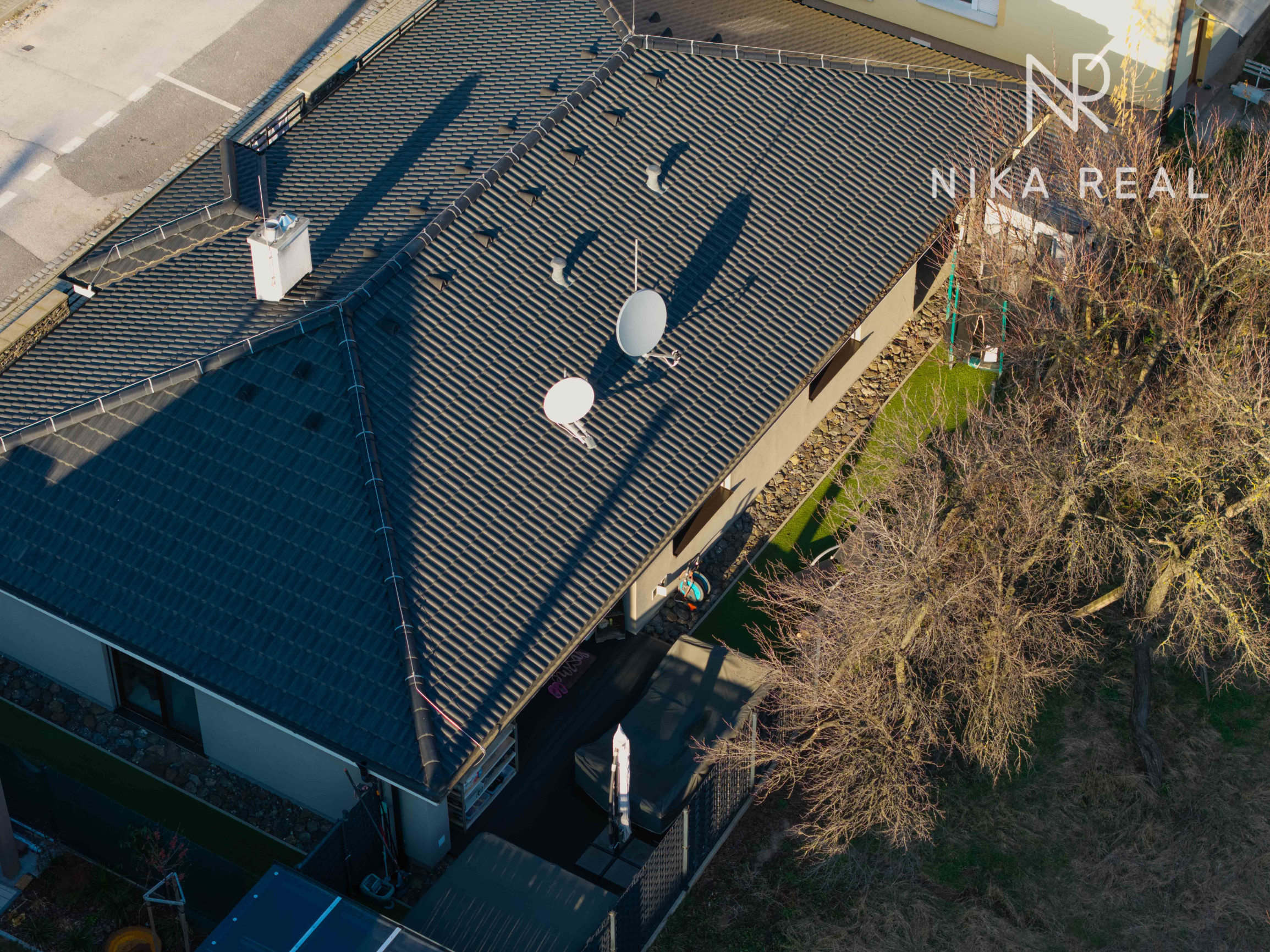 Dom je napojený na všetky inžinierske siete – plyn, elektrinu, vodovod, kanalizáciu a optický internet. K dispozícii je aj vonkajšia elektrická prípojka 380 V. Bezpečnosť zabezpečuje kamerový systém, alarm a elektrická brána na diaľkové ovládanie.
